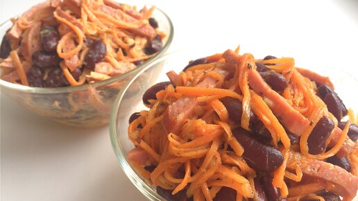 Быстрый салат с фасолью и колбасой. 5 минут и готово