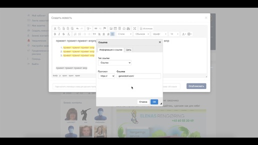 ✅ Как правильно создать текстовую новость и ссылку на сайте? | Обучение работе в социальной бизнес сети Generator Traffica