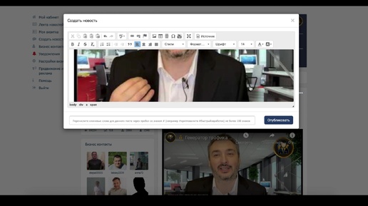 ✅ Как вставить видео Youtube в новость визитки | Обучение работе в социальной бизнес сети Generator Traffica