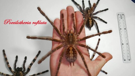 Размеры птицеедов Poecilotheria metallica, Poecilotheria rufilata, Poecilotheria tigrinawesseli и др