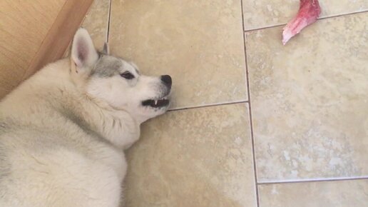 Только попробуй отобрать мою еду! Что делает собака хаски при попытке украсть её косточку