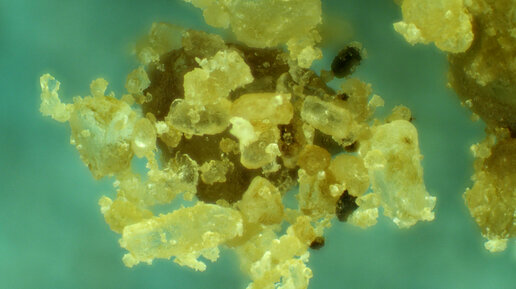 Кубик для бульона под микроскопом