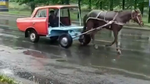 Симбиоз из лошади и «Москвича» ездит по дорогам Украины
