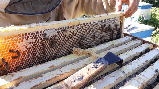 Смотрим, что наносили пчёлы в кассетном улье. Работают две матки