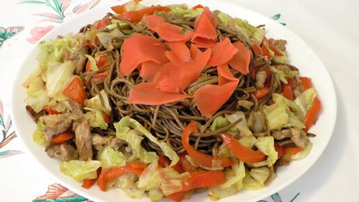 Жареная лапша Якисоба. Простая и очень вкусная еда. Готовится очень быстро из простых продуктов.