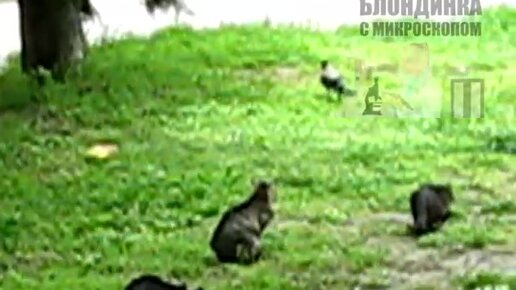 Наглая авторитетная ворона гоняет котов