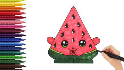 Как нарисовать МИЛЫЙ АРБУЗИК / КАВАЙНЫЕ РИСУНКИ / Мультик раскраска | How to draw a CUTE WATERMELON