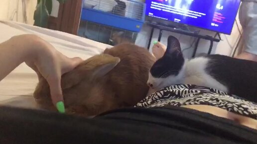 Кролик и котенок спят вместе 😍 Хоум видео))