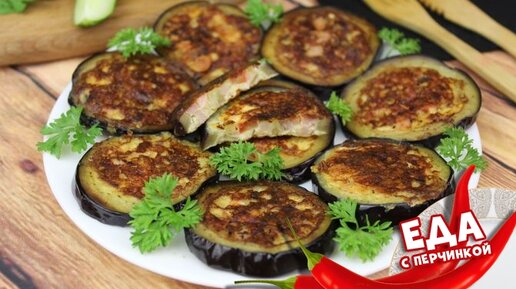Жареные колецки баклажанов, фаршированные помидорами, ветчиной и сыром