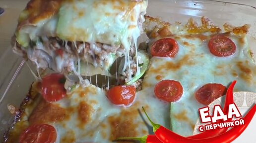 Лазанья из кабачков и мясного фарша, с сыром и зеленью