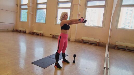 Тренировка рук с гантелей