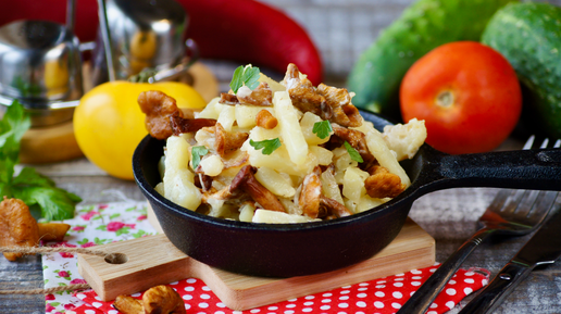 🥔 Жареная картошка с лисичками в сметане — так вкусно, что ум отъешь!