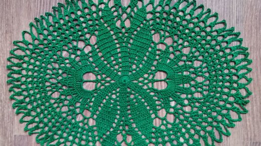 Овальная изумрудная салфетка, связанная крючком.