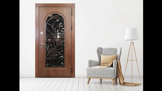 Входная металлическая дверь с терморазрывом со стеклом и ковкой в загородный дом