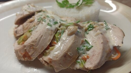 Карман из куриной грудки с овощами. Очень легко и вкусно.