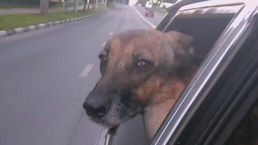 Собака едет в машине, и ей очень нравится