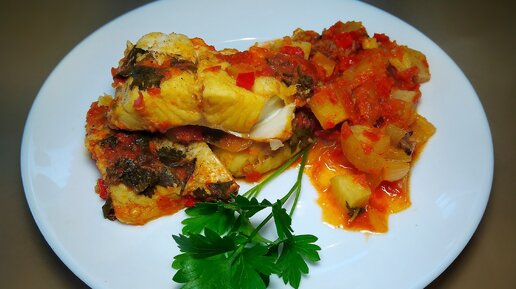 Тушеная рыба с овощами по - ливийски. Гарнир и рыба в одном блюде!
