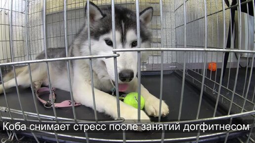 Хаски Коба словил стресс и отыгрывается на мячике, наглядное пособие, почему собаки разносят квартиры и мебель.
