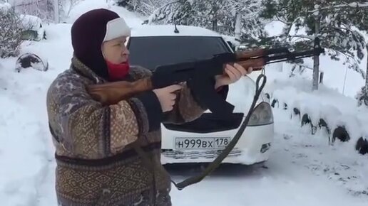 Бабуле дали пострелять из автомата Калашникова. Она была очень удивлена