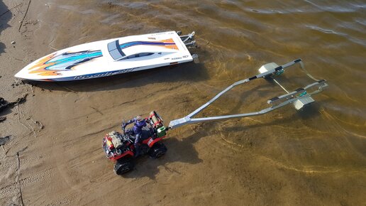 Спуск катера с помощью квадроцикла.