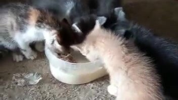 Кошка родила 5 котят. Теперь решили их покормить молоком