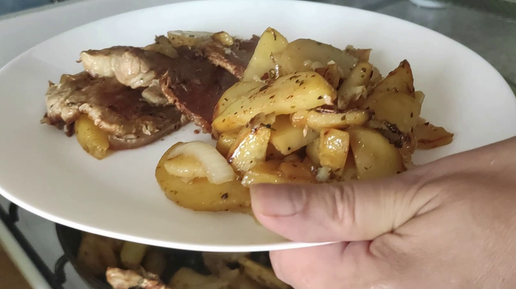 Как правильно пожарить картошку с мясом. Показываю свой способ