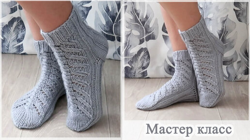 Легкие и простые носки спицами с косой и ажуром Мастер класс