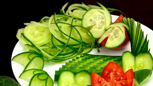 Как мой муж нарезает огурцы для красивой подачи на праздничный стол: 6 способов (очень просто и красиво)