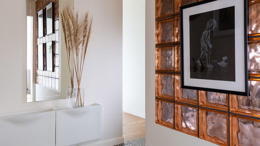 Необычная прихожая со стеной из стеклоблоков в типовой панельке