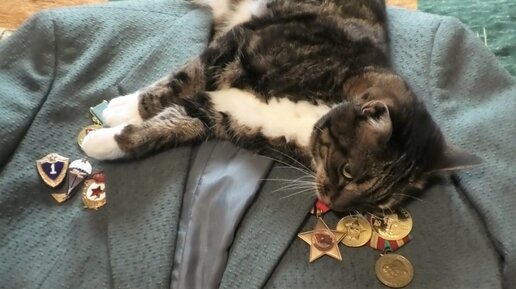 Кошка не желает покидать пиджак с медалями