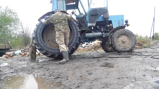 Как менять шины на тракторе МТЗ 80. Как снять старую покрышку и заменить на новую.