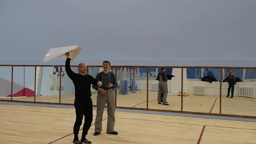 Сделали большой бумажный самолет. Первый запуск.