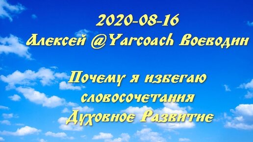 2020-08-16 Алексей @Yarcoach Воеводин. Почему я избегаю словосочетания "Духовное Развитие"