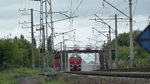 Пассажирский поезд под электровозом ЭП2К проезжает платформу Правая Белая