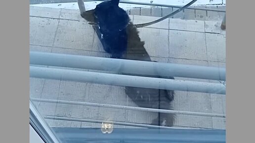 Первый раз оставил собаку около магазина купить ей корм. Её реакция, и моё наблюдение за ней из магазина.