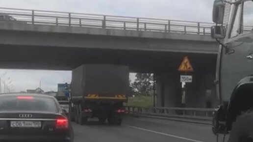 Колонна грузовиков без номеров едут в Белоруссию
