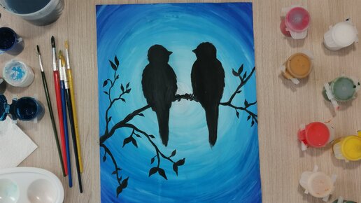 Мастер-класс по рисованию. Две птички сидят на ветке.