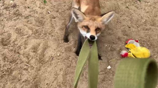 Лисёнок Симба в новом вольере, хочет играть и не отпускает домой