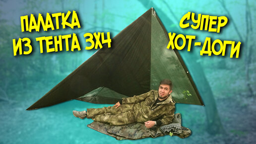 Как сделать палатку из тента 3 на 4 метра. Готовлю хот-доги на костре.
