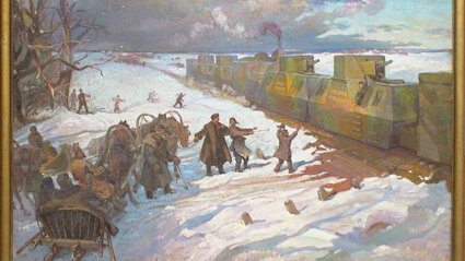 Картина Н.К. Сверчкова "Бронепоезд "Комсомол Чувашии" 1942 г. Х., м.