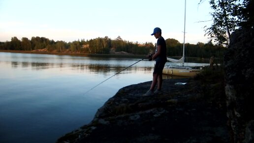 Вовка учится спиннингом закидывать