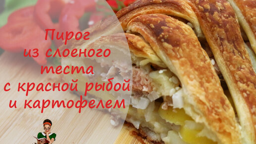 Пирог из слоеного теста с красной рыбой и картофелем