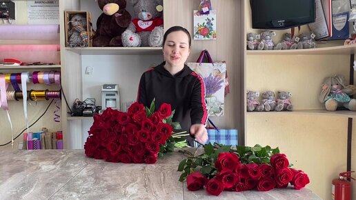Букет алых роз в стильной упаковке