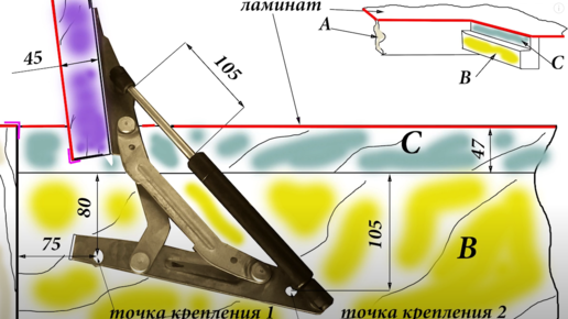 Люк в подвал (погреб) с амортизаторами (петлями) Лада - Калина. Чертеж