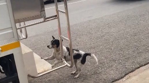Бродячий песик каждый день куда-то ездит на школьном автобусе