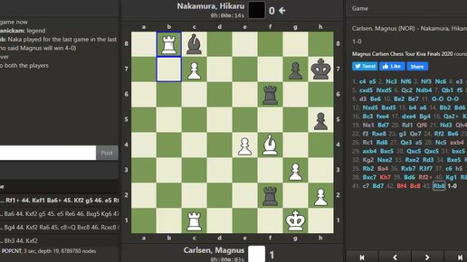 Магнус отыгрывает очко у Хикару в 58 раунде (20.08). Красивая игра чемпиона мира по шахматам: белыми он лучше играет против Наки