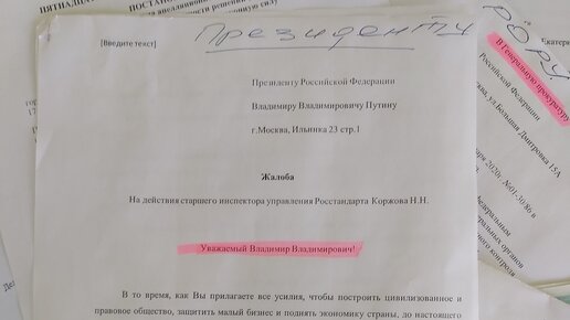 Письмо Президенту, Прокурору. Проверка Росстандарта по жалобе от несуществующей компании.