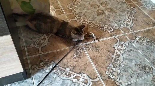 Игривый и упорный котёнок, заигрался с кошачьей игрушкой.