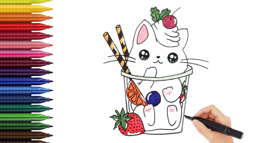 Как нарисовать МИЛОГО КОТИКА В СТАКАНЕ / Мультик раскраска / Рисуем и раскрашиваем МИЛОГО КОТИКА ❤