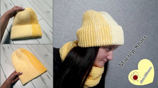 Шапка Бини в 2 цвета. Самая простая шапка на двух спицах. Мастер-Класс. Вязание спицами